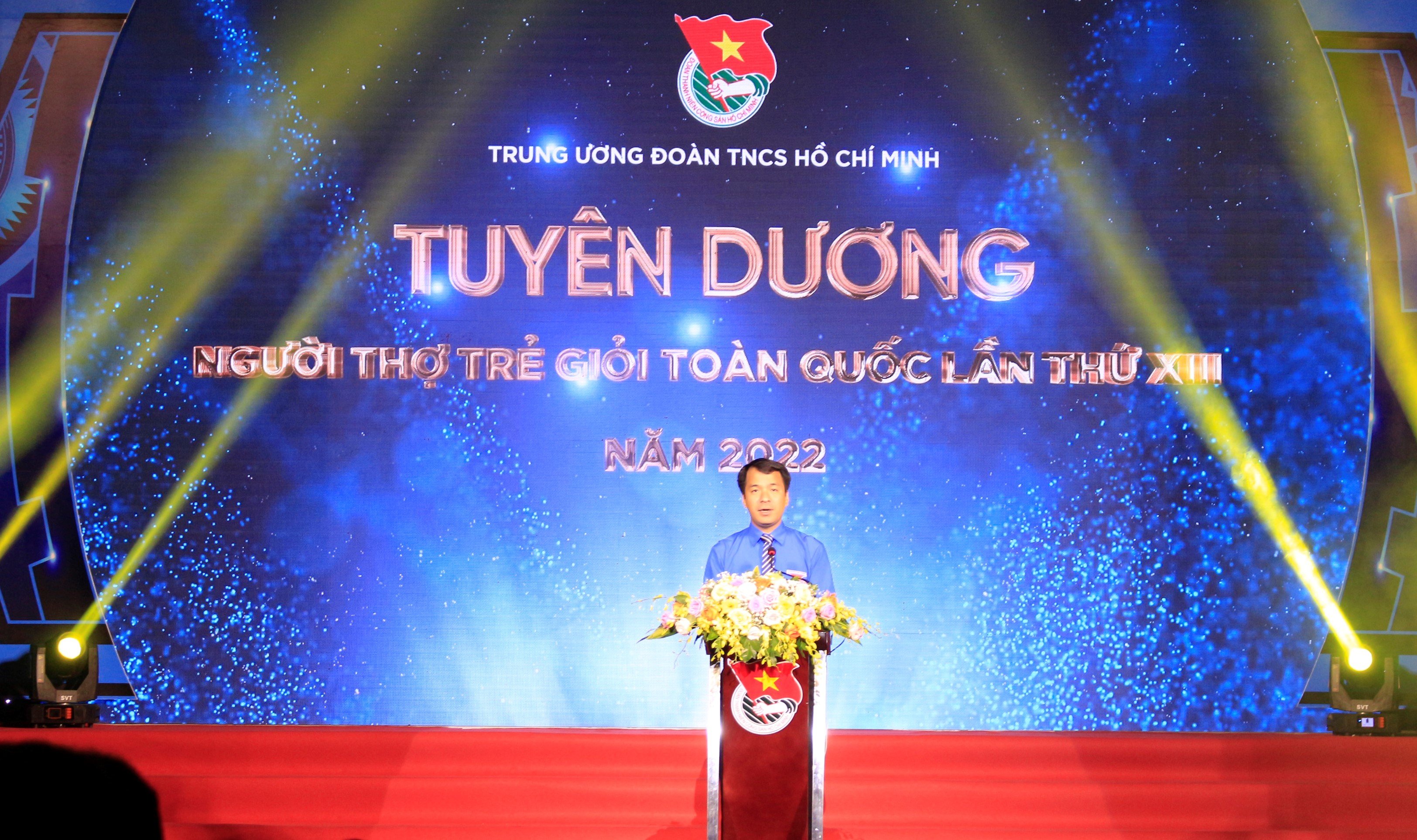 Bí thư TƯ Đoàn Ngô Văn Cương phát biểu tại chương trình tuyên dương Người thợ trẻ giỏi toàn quốc lần 13 năm 2022