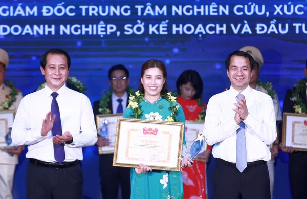 Đồng chí Ngô Văn Cương , Bí thư TƯ Đoàn và đồng chí Phạm Hoàng Anh, Phó Bí thư Thường trực tỉnh ủy Vĩnh Phúc trao Bằng khen tặng cán bộ, công chức, viên chức trẻ giỏi 2022