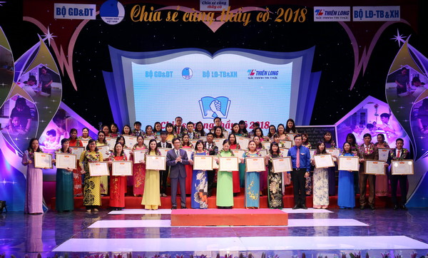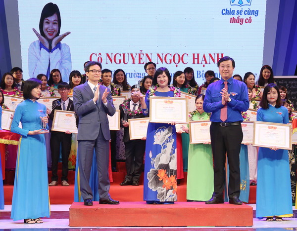 Chương trình “Chia sẻ cùng thầy cô” được triển khai từ năm 2015. Trong ba năm từ 2015-2017 chương trình đã tuyên dương 166 thầy giáo, cô giáo công tác tại các trường học điểm lẻ tại 64 huyện nghèo theo Nghị quyết 30a/2008/NQ-CP của Chính phủ; thầy cô công tác các trường học nằm trên đảo thuộc các huyện đảo và các đơn vị hành chính cấp huyện có xã đảo và cán bộ chiến sĩ bộ đội biên phòng làm công tác dạy học, xóa mù chữ trong chương trình “Nâng bước em đến trường”. Mỗi thầy giáo, cô giáo được tuyên dương được nhận 01 sổ tiết kiệm trị giá 10 triệu đồng, Bằng khen của Trung ương Hội LHTN Việt Nam, Bộ Giáo dục và Đào tạo cùng nhiều phần thưởng khác. |