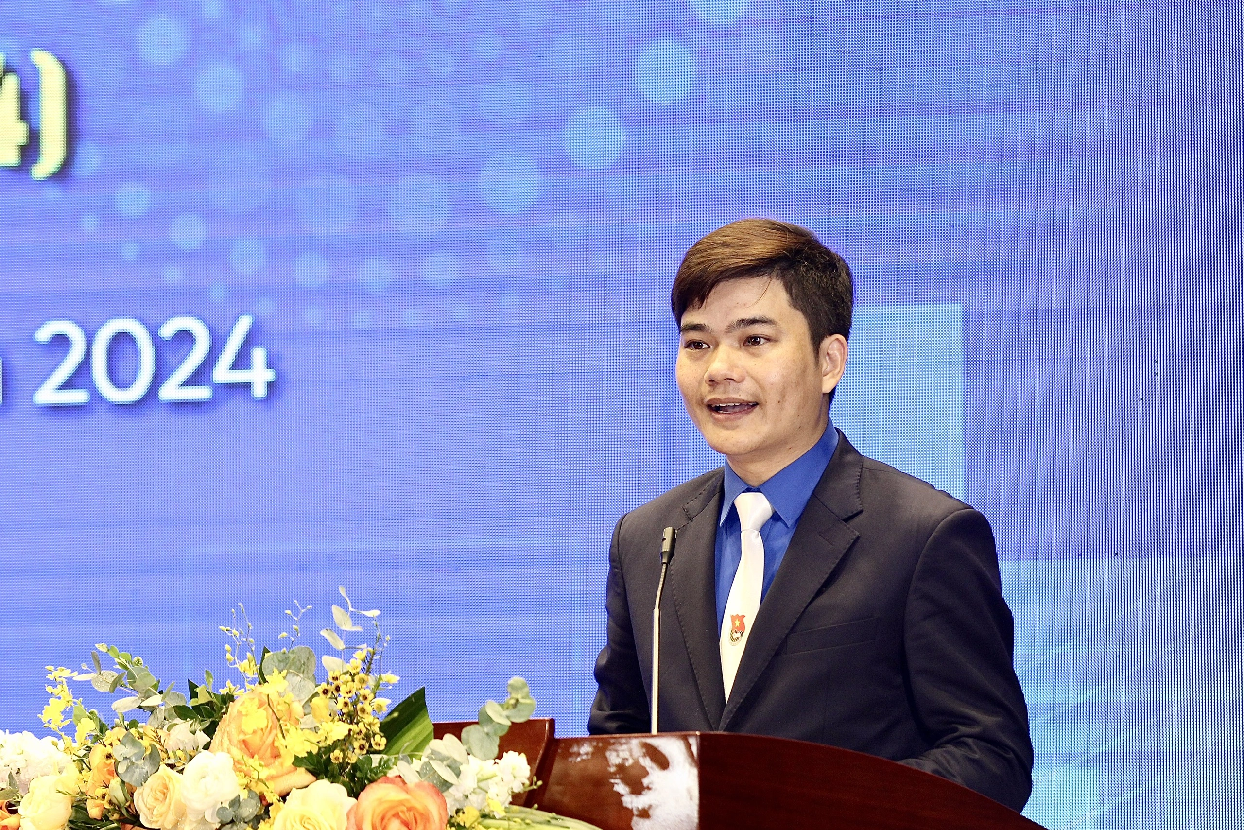 Bí thư Đoàn thanh niên Tập đoàn TKV Nguyễn Văn Thuấn báo cáo tại Hội nghị