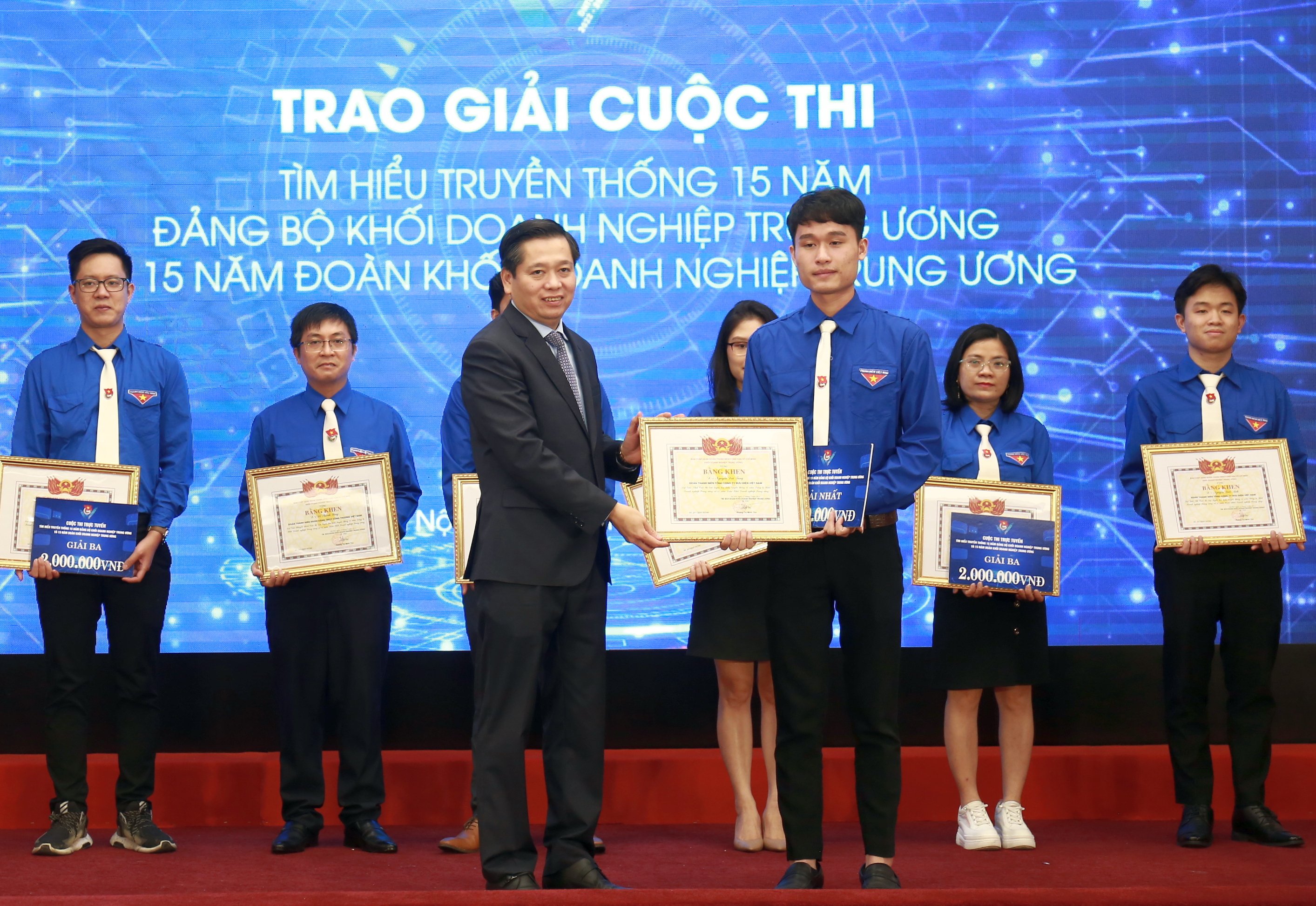 Tại buổi lễ, Đoàn Khối Doanh nghiệp Trung ương tổ chức trao giải Cuộc thi trực tuyến tìm hiểu truyền thống 15 năm Đảng bộ Khối Doanh nghiệp Trung ương và 15 năm Đoàn Khối Doanh nghiệp Trung ương.