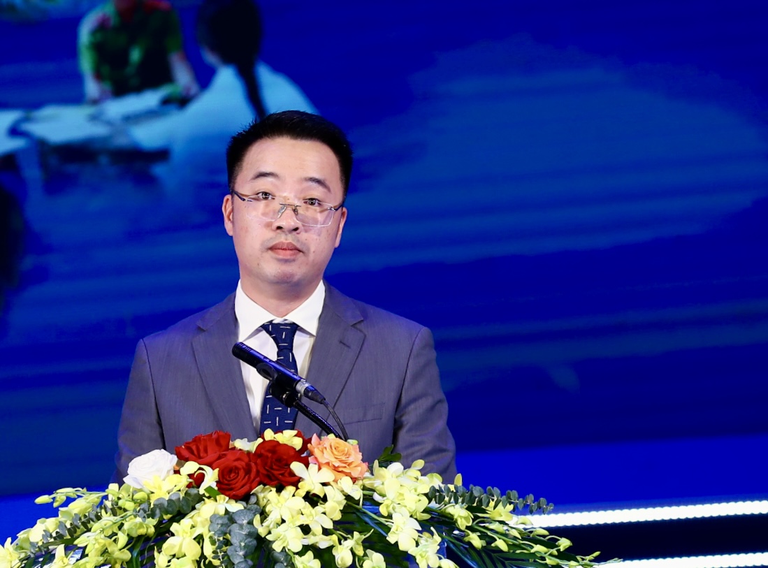 Đồng chí Nguyễn Tường Lâm, Bí thư Trung ương Đoàn, Phó Chủ tịch Trung ương Hội Liên hiệp Thanh niên Việt Nam phát biểu tại lễ tuyên dương