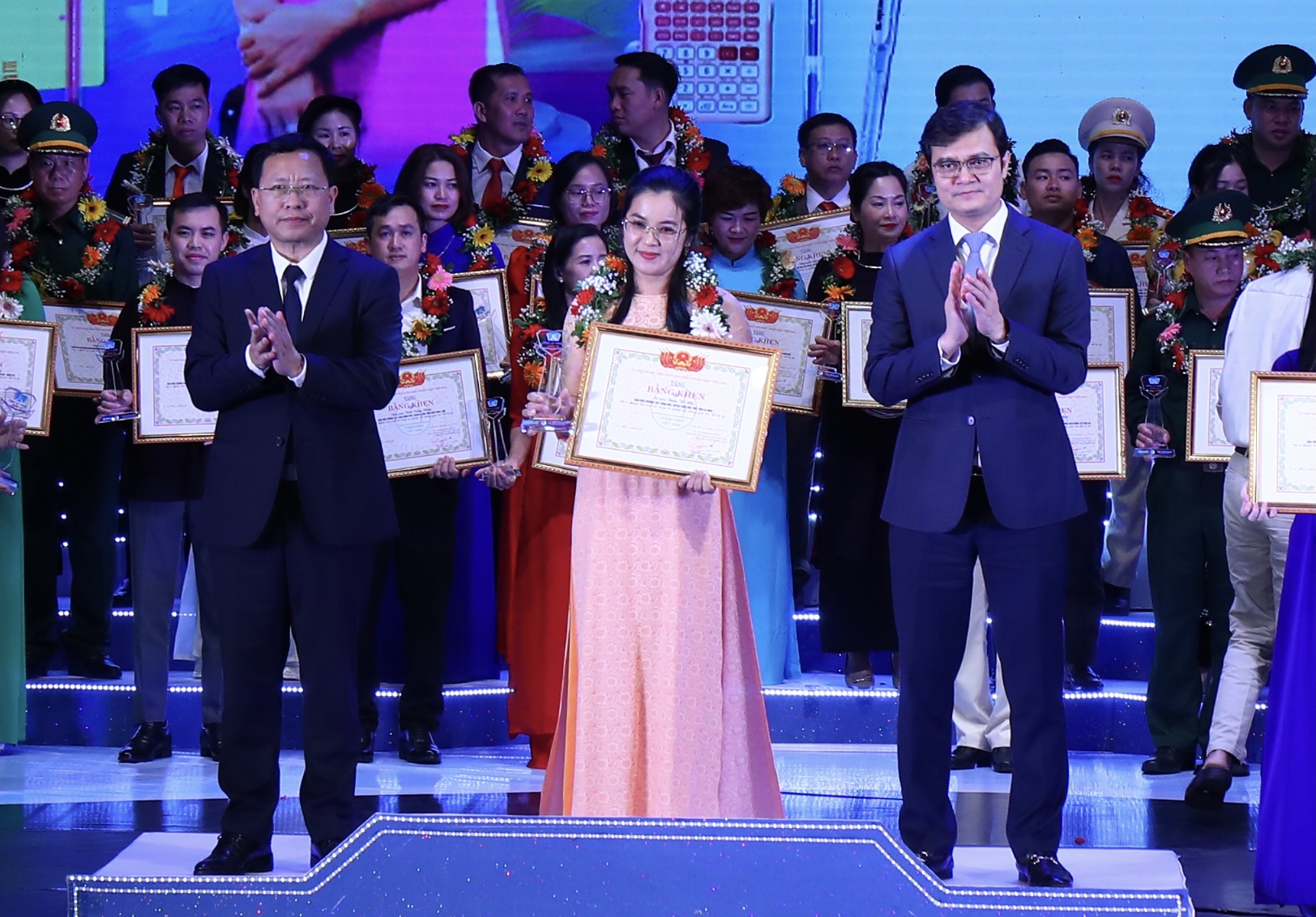 Đồng chí Nguyễn Kim Quy, Phó Chủ tịch thường trực Trung ương Hội Liên hiệp Thanh niên Việt Nam và đồng chí Phạm Tuấn Anh, Phó Cục trưởng Cục Nhà giáo và cán bộ quản lý cơ sở giáo dục Bộ Giáo dục và đào tạo trao Bằng khen và kỷ niệm chương của chương trình dành cho những nỗ lực không ngừng nghỉ của các thầy cô giáo
