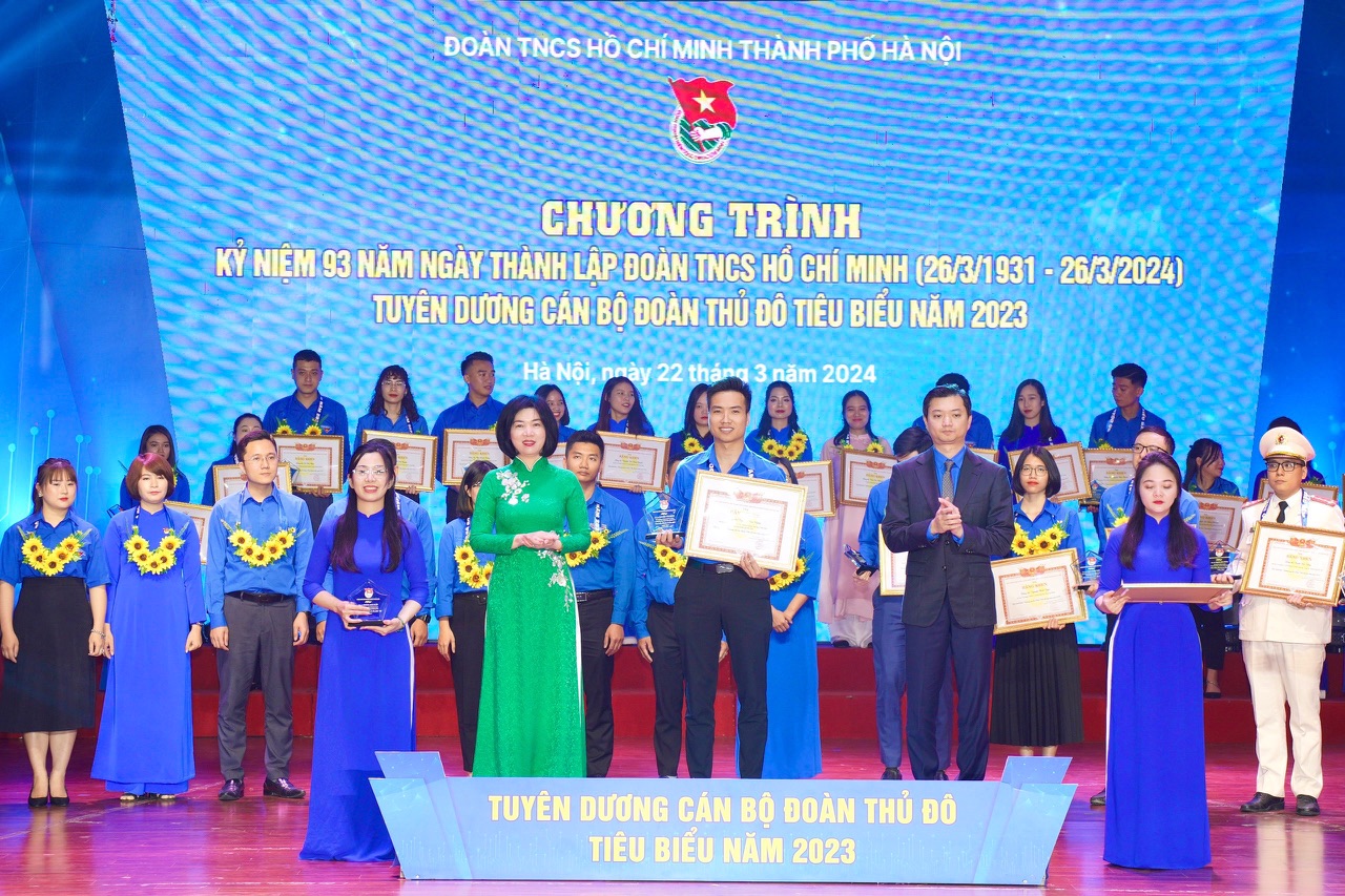 Tại chương trình, Thành Đoàn Hà Nội tuyên dương 70 cán bộ Đoàn Thủ đô tiêu biểu năm 2023. Đây là những cán bộ Đoàn có thành tích tiêu biểu, xuất sắc, có sức lan tỏa rộng rãi trong cộng đồng, với “tâm trong, trí sáng - hoài bão lớn”.