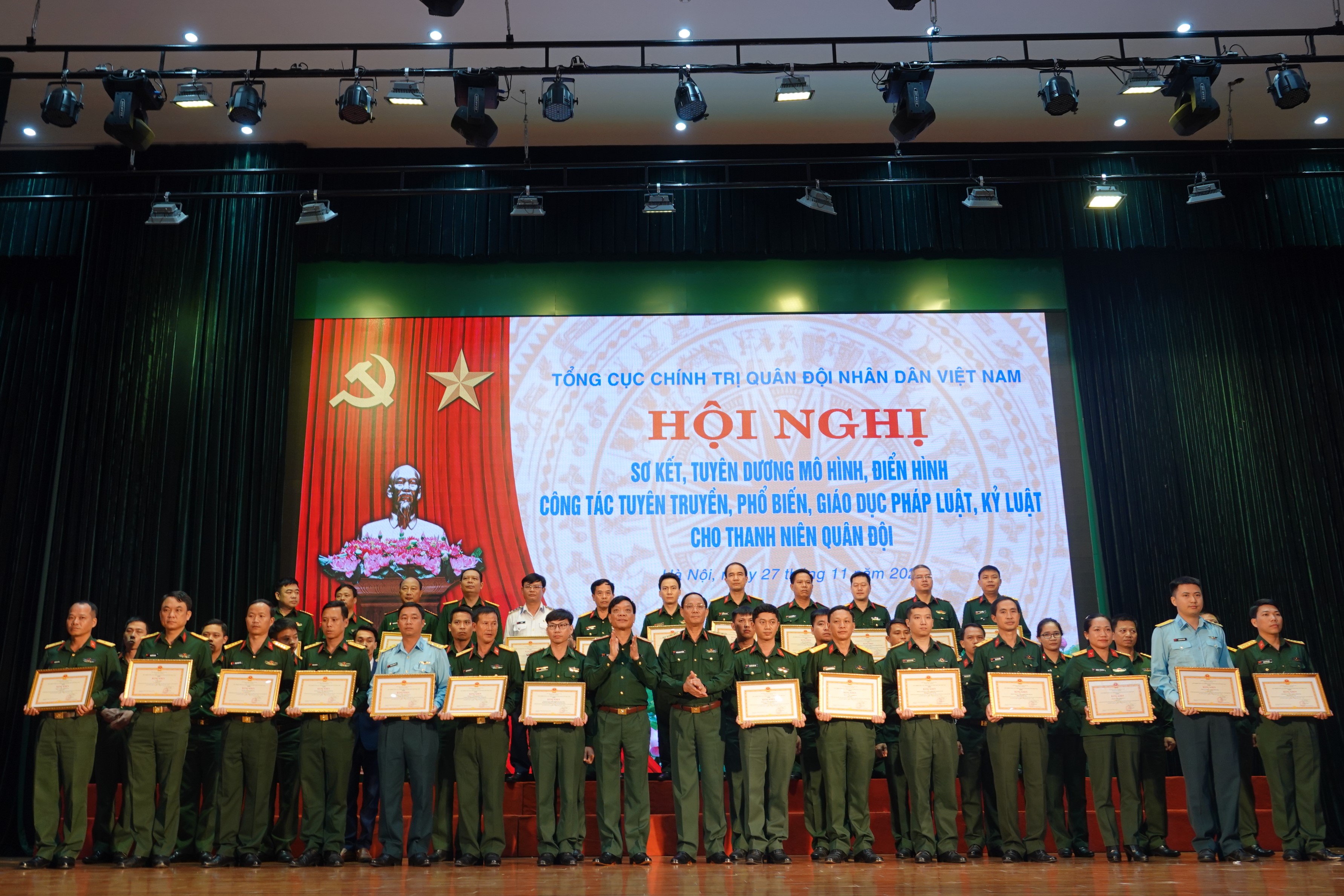 Thượng tướng Trần Quang Phương, Ủy viên Trung ương Đảng, Ủy viên Quân ủy Trung ương, Phó Chủ nhiệm Tổng cục Chính trị QĐND Việt Nam và Trung tướng Nguyễn Tân Cương, Ủy viên Trung ương Đảng, Ủy viên Quân ủy Trung ương, Thứ trưởng Bộ Quốc phòng trao tặng Bằng khen cho 44 tập thể, cá nhân điển hình tiên tiến