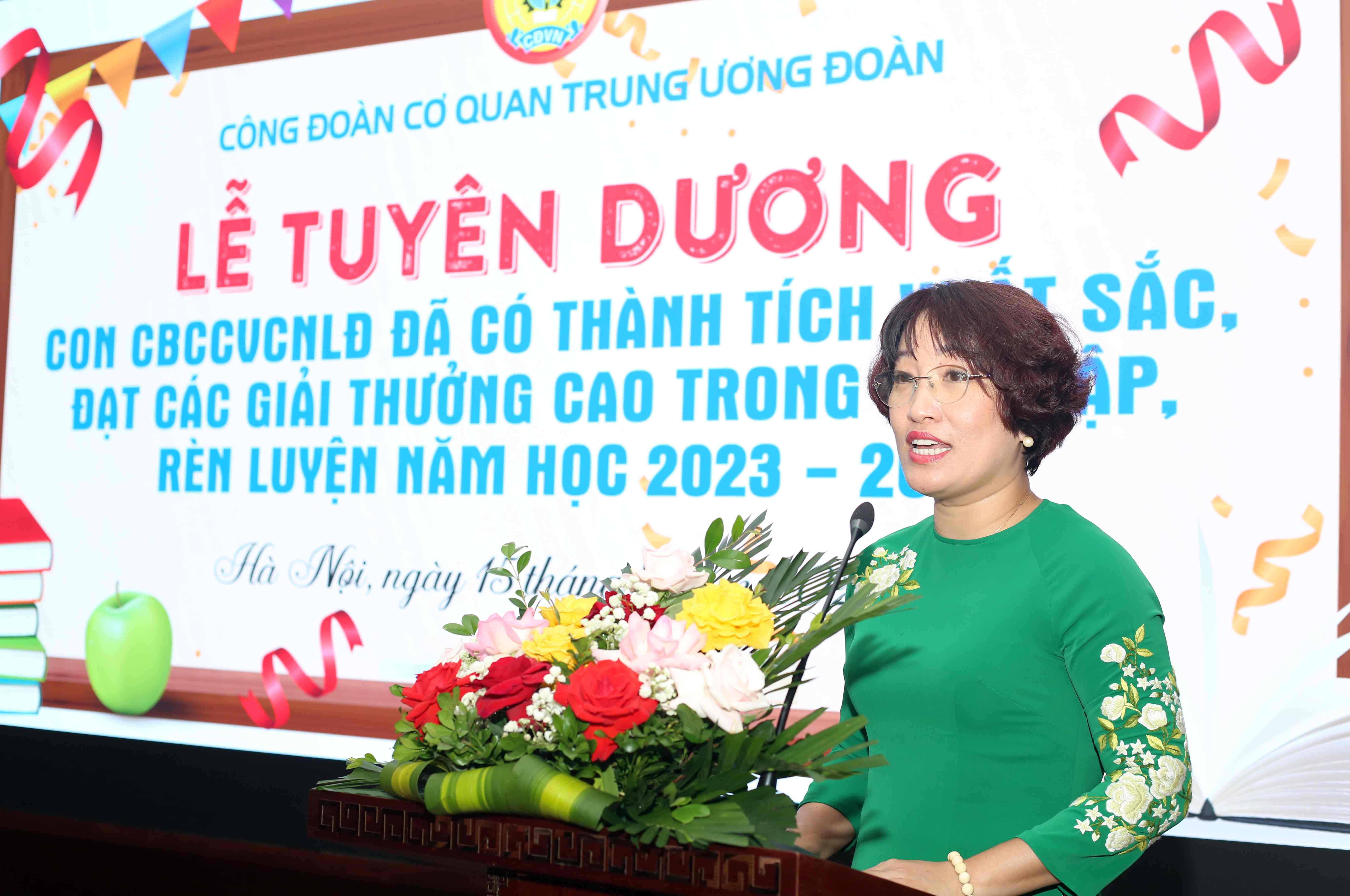 Phát biểu tại chương trình, đồng chí Lê Hồng Hạnh - Chủ tịch Công đoàn cơ quan T.Ư Đoàn cho biết, Đảng ủy, Thủ trưởng cơ quan và Công đoàn cơ quan T.Ư Đoàn rất vinh dự và tự hào về đội ngũ con em của cán bộ, công chức, viên chức và người lao động cơ quan. Các cháu không chỉ là những con ngoan mà còn là những học trò giỏi và xuất sắc trong học tập và rèn luyện.