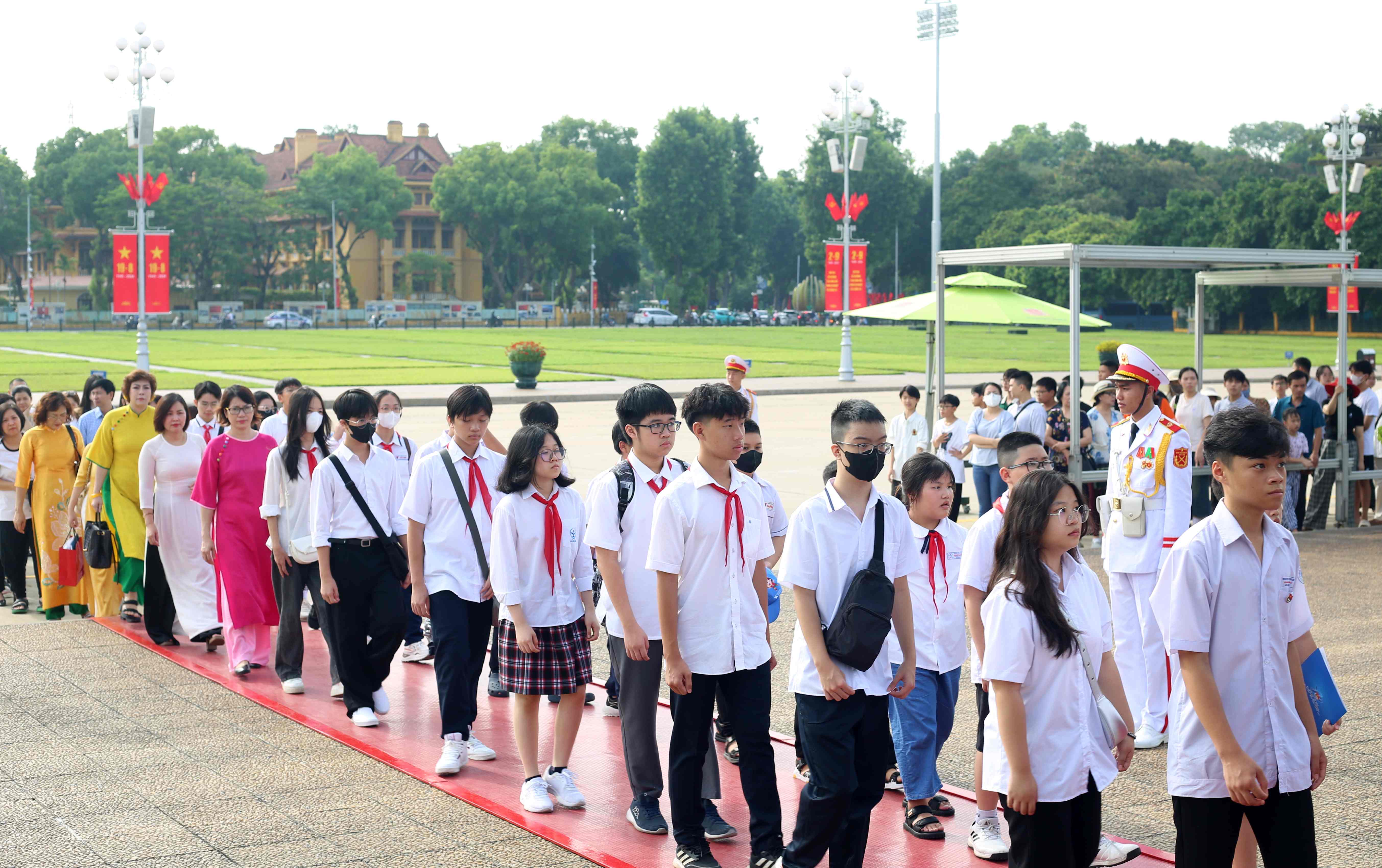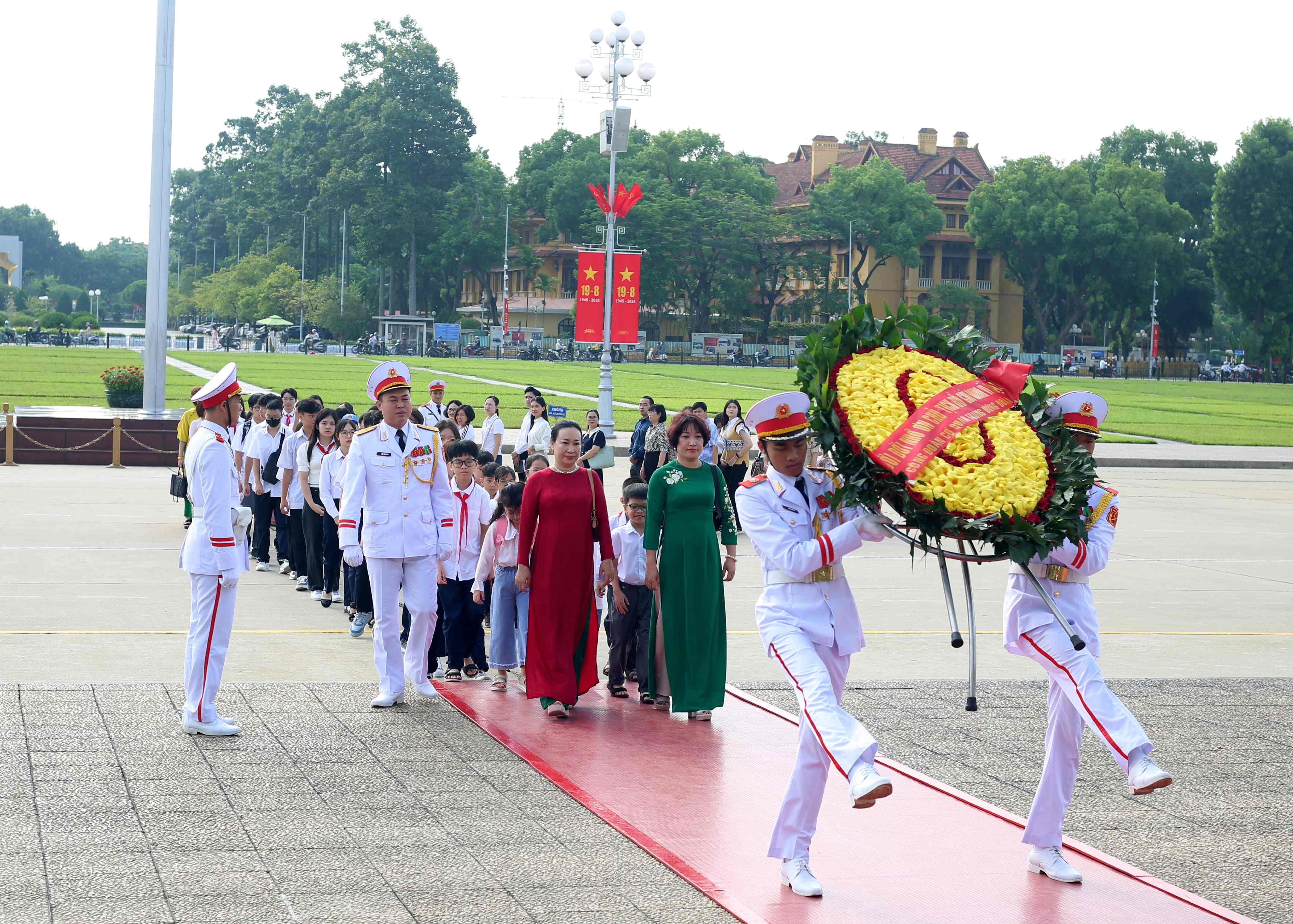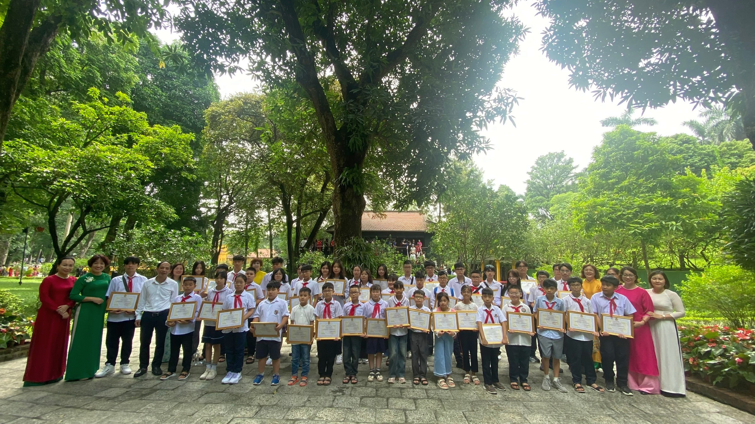 Trước đó, các em học sinh đã vào viếng Lăng Chủ tịch Hồ Chí Minh, tham quan Khu di tích Phủ Chủ tịch và dâng hương tưởng niệm Bác Hồ. Đây là nơi sống và làm việc lâu nhất trong cuộc đời hoạt động cách mạng của Bác Hồ (từ ngày 19/12/1954 đến ngày 2/9/1969). Các em học sinh được đi thăm các di tích lịch sử như: nhà sàn nơi Bác đã từng sống và làm việc, ao cá, Bảo tàng Hồ Chí Minh.