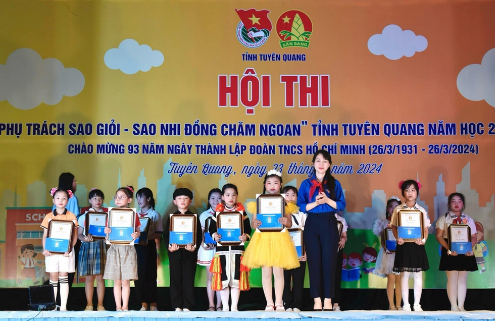 Ban Tổ chức trao giải cho các thí sinh xuất sắc tại Hội thi “Phụ trách Sao giỏi - Sao nhi đồng chăm ngoan