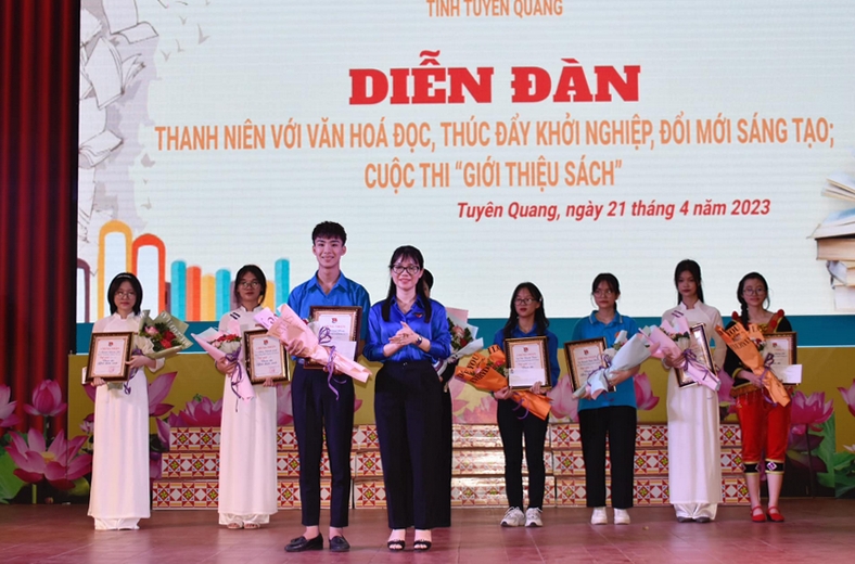 Ngay sau Diễn đàn, hơn 1000 bạn ĐVTN trường THPT Tân Trào đã theo dõi, cổ vũ cho 8 thí sinh đại diện 8 trường Đại học, THPT trên địa bàn thành phố Tuyên Quang, huyện Yên Sơn tham gia Cuộc thi “Giới thiệu sách” do Tỉnh đoàn Tuyên Quang tổ chức. Các thí sinh đã lồng ghép nhiều hình ảnh, tiết mục minh hoạ sinh động giới thiệu đến khán giả và ban tổ chức nhiều cuốn sách hấp dẫn cùng phong thái thể hiện tự tin, khơi dậy được niềm hứng thú, tò mò của khán giả đối với những cuốn sách mà mình giới thiệu. Kết quả Ban Tổ chức quyết định trao 01 giải nhất, 02 giải nhì, 02 giải ba; 03 giải khuyến khích cho các thí sinh.