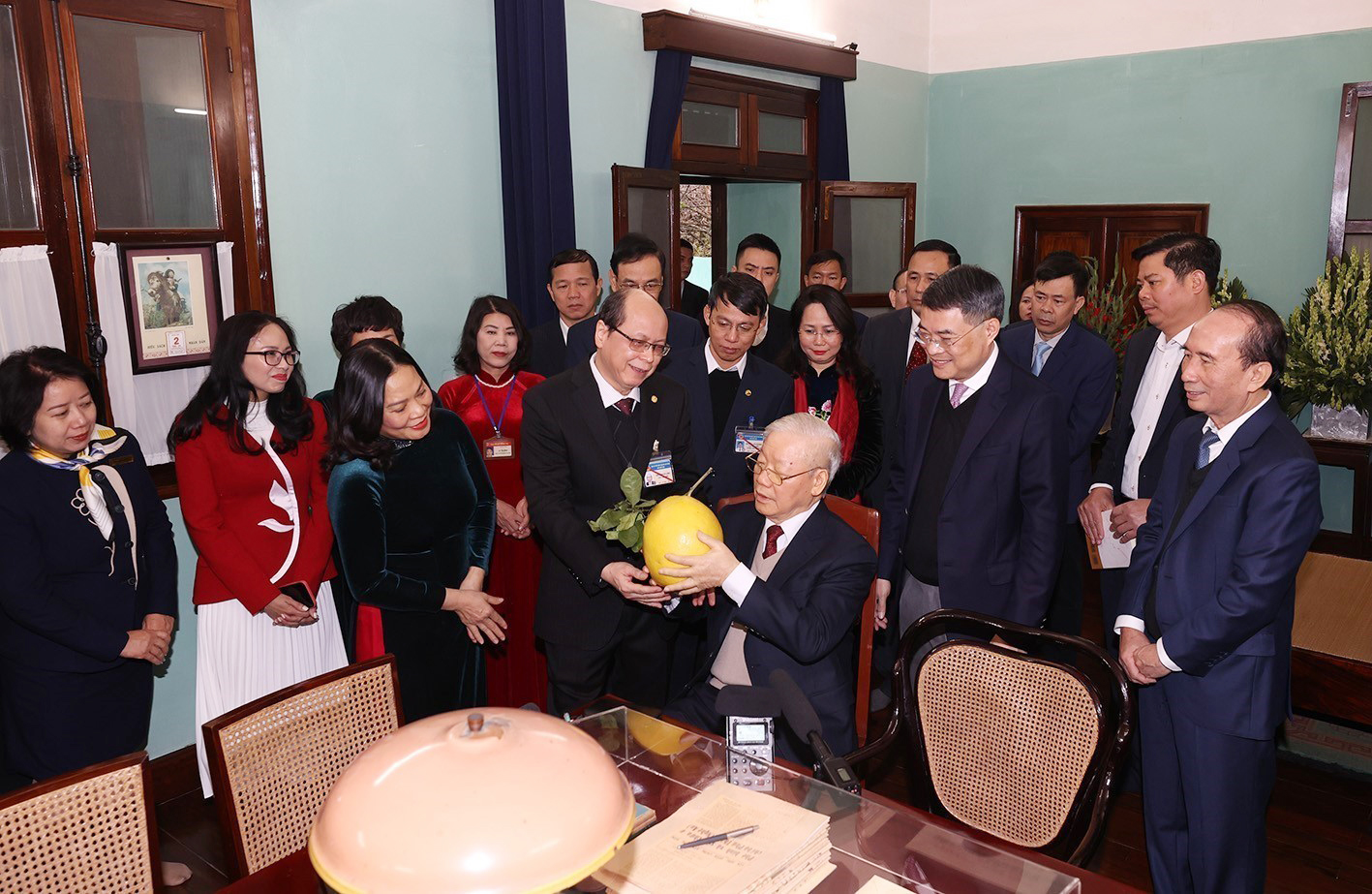 Nhân dịp tết Nguyên đán Quý Mão 2023 và kỷ niệm 93 năm Ngày thành lập Đảng Cộng sản Việt Nam (3-2-1930 - 3-2-2023), Tổng Bí thư Nguyễn Phú Trọng dâng hương tưởng niệm Chủ tịch Hồ Chí Minh tại Nhà 67 trong Khu Di tích Chủ tịch Hồ Chí Minh ở Phủ Chủ tịch_Ảnh: TTXVN
