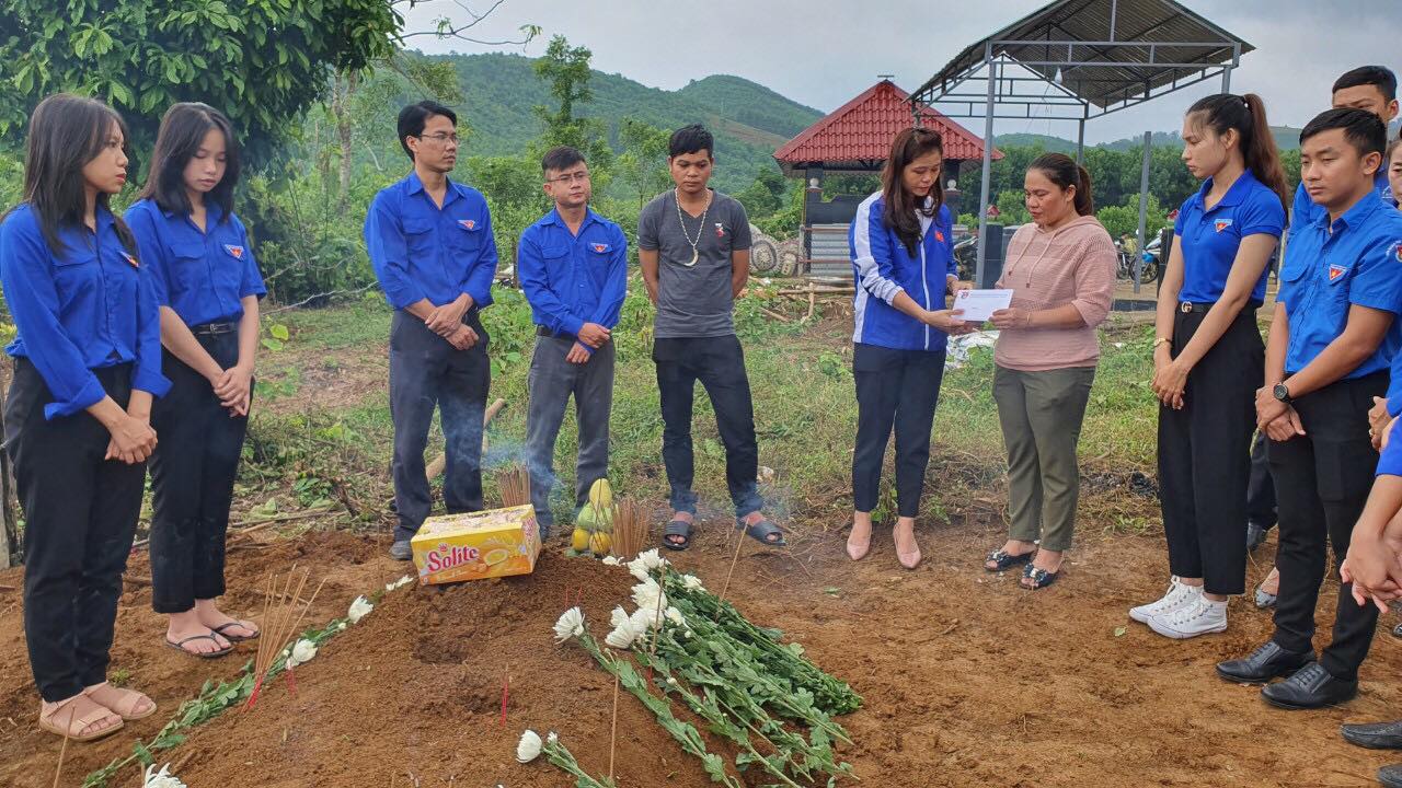Thành kính đặt nén tâm nhang lên mộ đồng chí Phó Bí thư Đoàn xã hy sinh khi đang trên đường đi giúp dân, đồng chí Phạm Thị Thanh chuyển lời thăm hỏi và chia buồn sâu sắc của Ban Bí thư Trung ương Đoàn tới gia đình, đồng thời đề nghị Huyện đoàn Phước Sơn khẩn trương triển khai lực lượng thanh niên hỗ trợ gia đình an táng và xây dựng phần mộ cho đồng chí Độ.