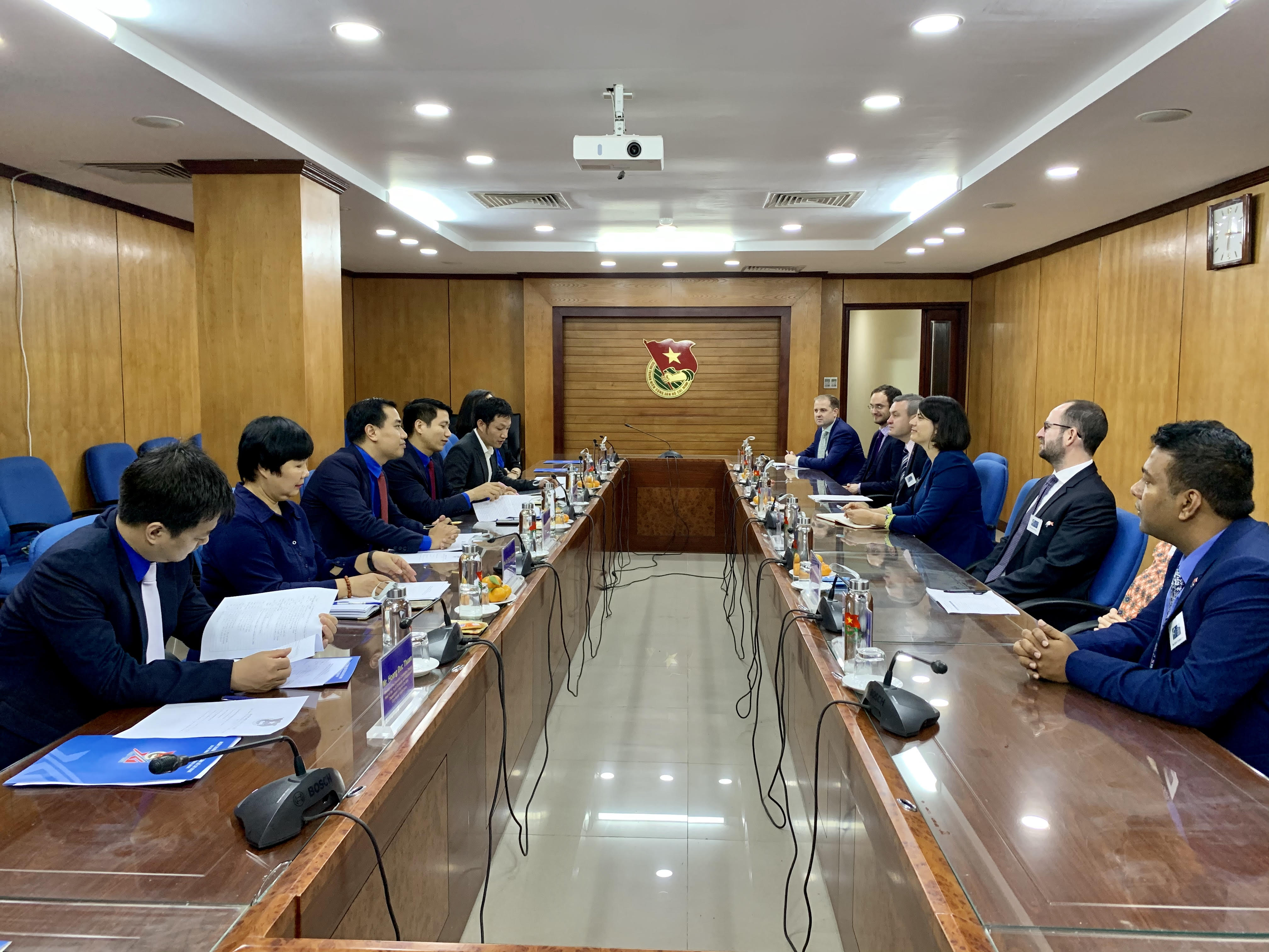 Thay mặt Ban Bí thư Trung ương Đoàn, đồng chí Nguyễn Ngọc Lương chào mừng bà Laura Fraser Hardy và các thành viên đoàn đại biểu Hội đồng giao lưu chính trị Ốt-xtrây-li-a đã tới thăm và làm việc tại Việt Nam.
