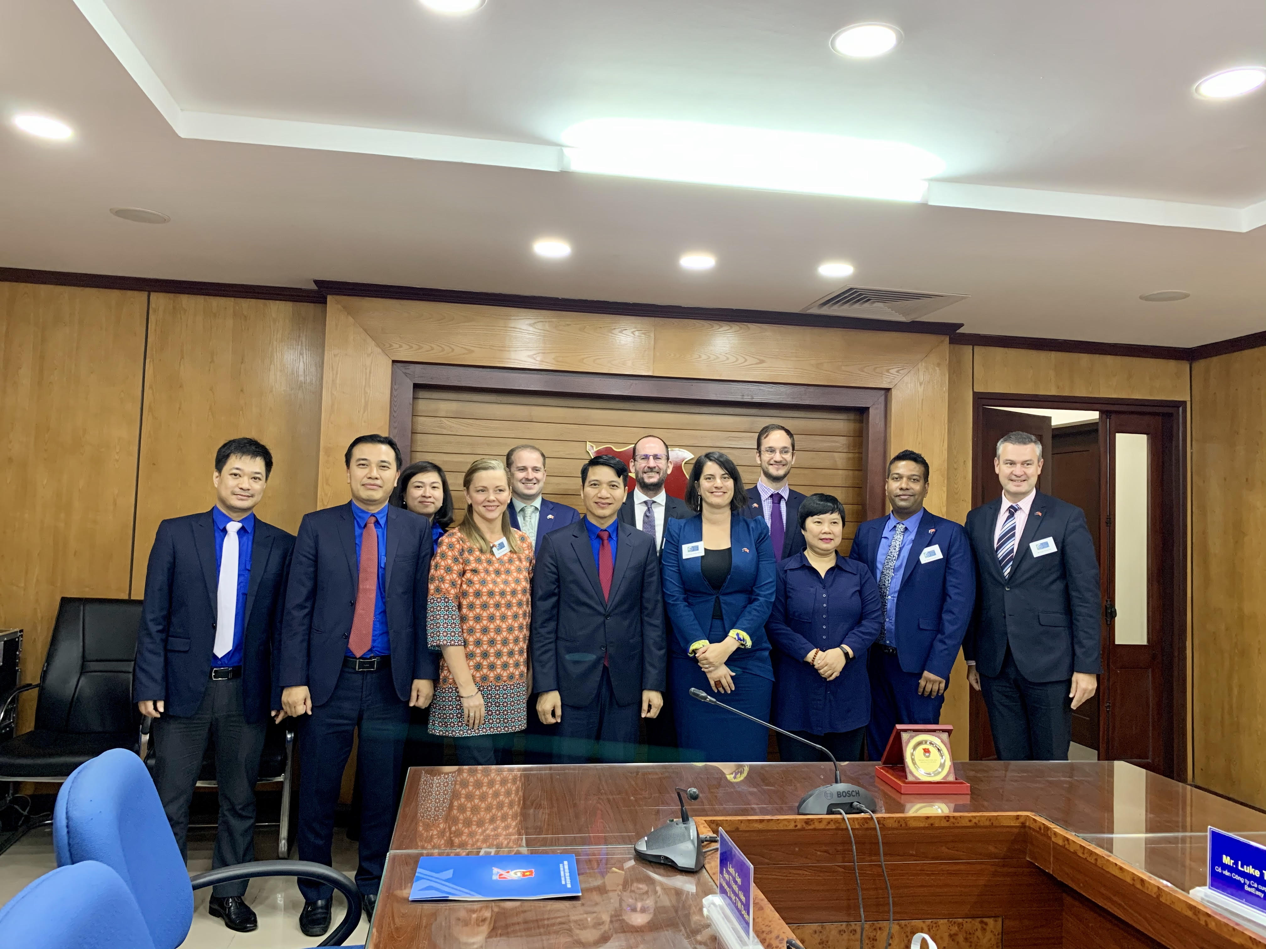 Đoàn đại biểu Hội đồng giao lưu chính trị Ốt-Xtrây-li-a chụp hình lưu niệm cùng Đoàn TNCS Hồ Chí Minh
