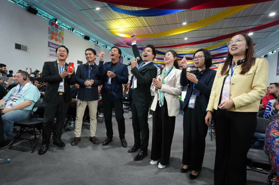 Tại phiên trọng thể, Phó Chủ tịch thứ nhất Đảng XHCN Thống nhất Venezuela đã mời Trưởng đoàn đại biểu Việt Nam cùng lên sân khấu chủ trì phiên trọng thể; đồng thời cảm ơn và chào mừng đoàn đại biểu thanh niên Việt Nam tham dự.