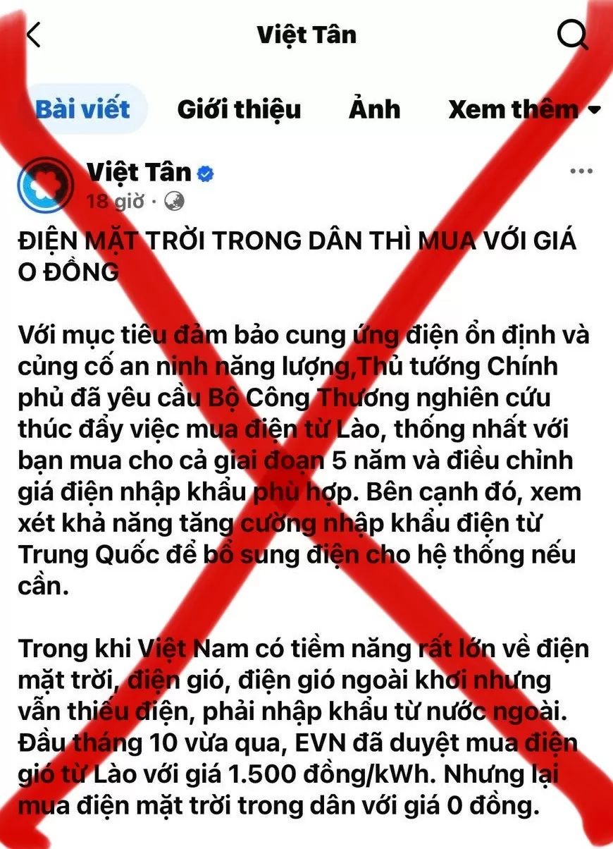 Về cáo buộc mua điện mặt trời từ người dân với giá 0 đồng, đây là một sự xuyên tạc trắng trợn. Thực tế, Chính phủ đã quy định rất rõ về cơ chế phát triển điện mặt trời mái nhà tự sản xuất, tự tiêu thụ, và việc mua điện dư từ người dân được thực hiện theo các chính sách hợp pháp. Theo Nghị định số 135/2024/NĐ-CP, được chính phủ ban hành và đã có hiệu lực từ ngày 22/10/2024, việc mua bán điện mặt trời giữa EVN và người dân được quy định chặt chẽ với mức giá hợp lý, không phải "0 đồng" như tổ chức Việt Tân cáo buộc. Các chính sách này không chỉ khuyến khích người dân phát triển năng lượng tái tạo mà còn giúp giảm thiểu lãng phí nguồn năng lượng dư thừa.