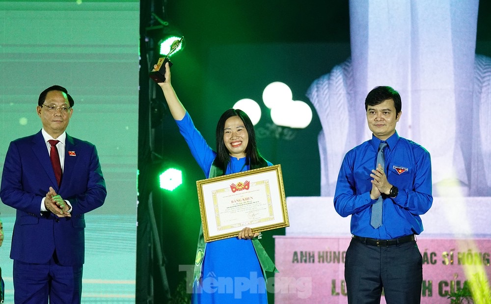 Phó Chủ tịch Quốc hội Trần Quang Phương và Bí thư thứ nhất T.Ư Đoàn Bùi Quang Huy trao tặng Giải thưởng Lương Định Của cho thanh niên tiêu biểu. Ảnh: Hòa Hội