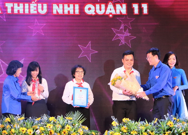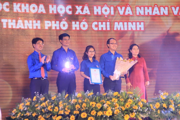 Đại diện lãnh đạo Đoàn trường ĐH Khoa học Xã hội và Nhân văn TPHCM nhận giải thưởng Hồ Hảo Hớn năm 2019 |