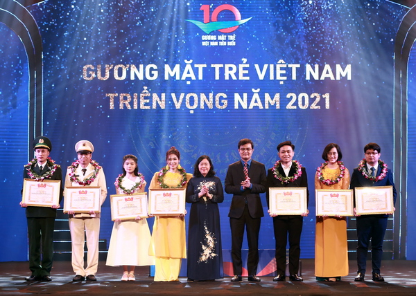 Bí thư T.Ư Đảng, Trưởng ban Dân vận T.Ư Bùi Thị Minh Hoài và Ủy viên dự khuyết T.Ư Đảng, Bí thư thường trực T.Ư Đoàn Bùi Quang Huy trao giải thưởng các gương mặt trẻ Việt Nam triển vọng năm 2021.