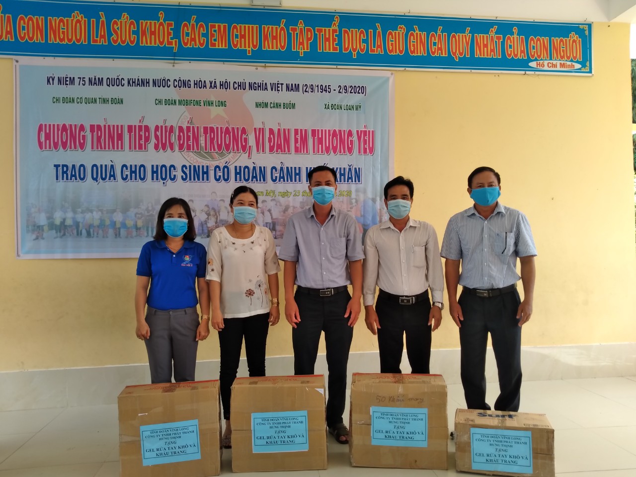 Trước đó, ngày 23/8, Ban Thường vụ Tỉnh Đoàn phối hợp với Nhà phân phối Hòa Phát Vĩnh Long trao tặng 50 hộp khẩu trang Y tế kháng khuẩn và 640 chai gel dung dịch rửa tay khô cho các trường Mầm non, Tiểu học, THCS và THPT trên địa bàn Phường 9, TP Vĩnh Long và huyện Tam Bình với tổng kinh phí gần 40 triệu đồng./.