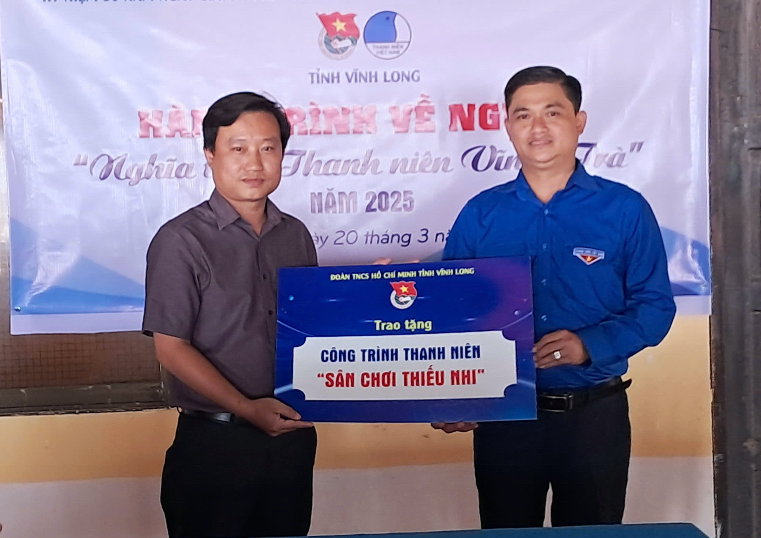 Tiếp nối hành trình, Tỉnh đoàn Vĩnh Long đã trao kinh phí hỗ trợ xây dựng công trình thanh niên "Sân chơi thiếu nhi" cho Huyện đoàn Duyên Hải nhằm tạo điều kiện cho các em có một không gian vui chơi an toàn, lành mạnh. Đồng thời, đoàn công tác trao 20 suất học bổng cho các em thiếu nhi có hoàn cảnh khó khăn, vượt khó học tốt,...