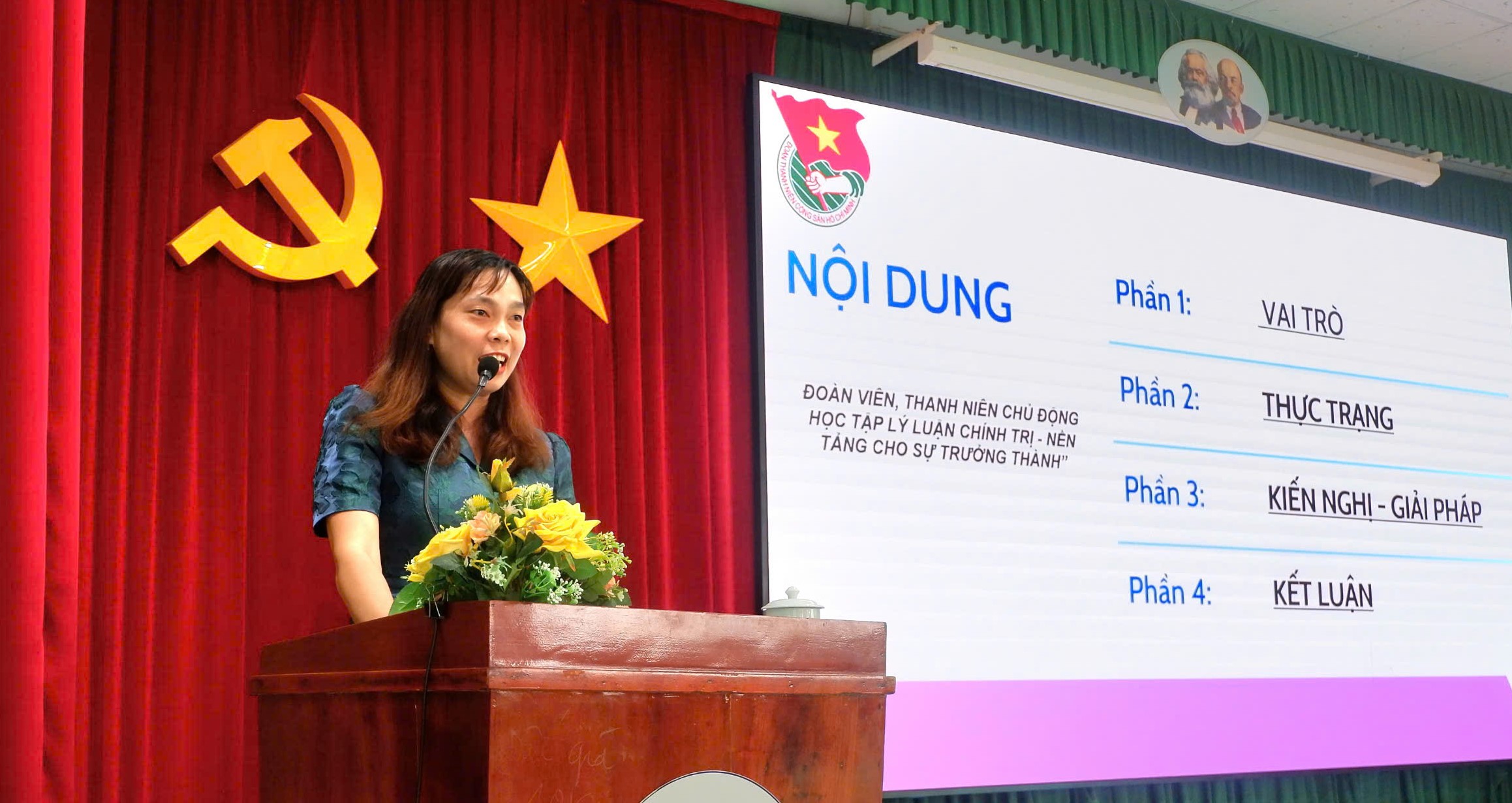 Tiếp nối chương trình, đồng chí Nguyễn Thị Thúy Kiều, Phó Trưởng Khoa Lý luận chính trị, Trường Đại học Xây dựng Miền Tây nhấn mạnh tầm quan trọng của việc chủ động học tập lý luận chính trị – nền tảng vững chắc cho sự trưởng thành, bản lĩnh và nhận thức chính trị của đoàn viên, thanh niên.