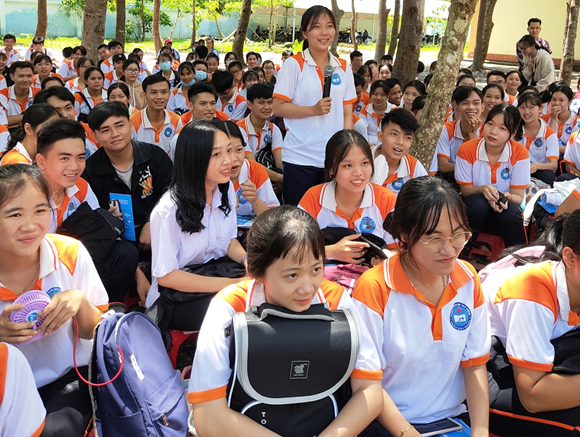 Học sinh tham gia giao lưu với diễn giả, chuyên gia tâm lý, Tiến sĩ Huỳnh Anh Bình tại trường THPT Trần Đại Nghĩa – Tam Bình