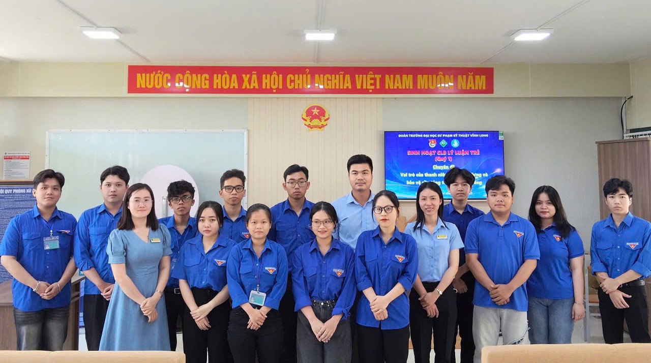 Thành viên câu lạc bộ Lý luận trẻ trường Đại học Sư phạm Kỹ thuật Vĩnh Long chụp ảnh lưu niệm