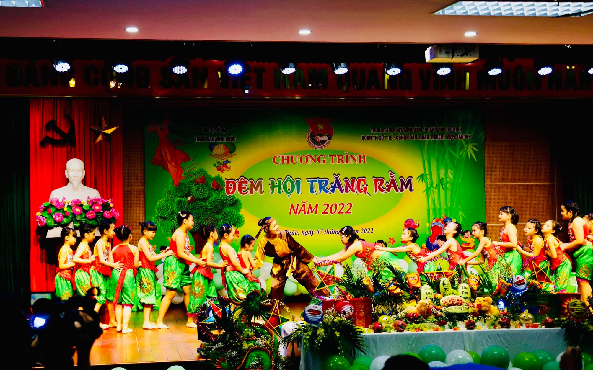 Trong không khí náo nức của Tết Trung thu 2022, Đêm hội trăng rằm được tổ chức với nhiều hoạt động như: Khai hội múa lân, các trò chơi, câu đó dân gian, phá cỗ trung thu và tặng quà cho các thiếu nhi đang điều trị tại bệnh viện.