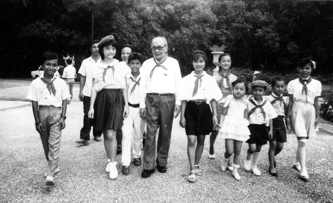 Chủ tịch Hội đồng Nhà nước Võ Chí Công gặp gỡ các cán bộ phụ trách Đội và thiếu nhi Hà Nội (Hà Nội, 12/8/1991). (Ảnh: TTXVN)