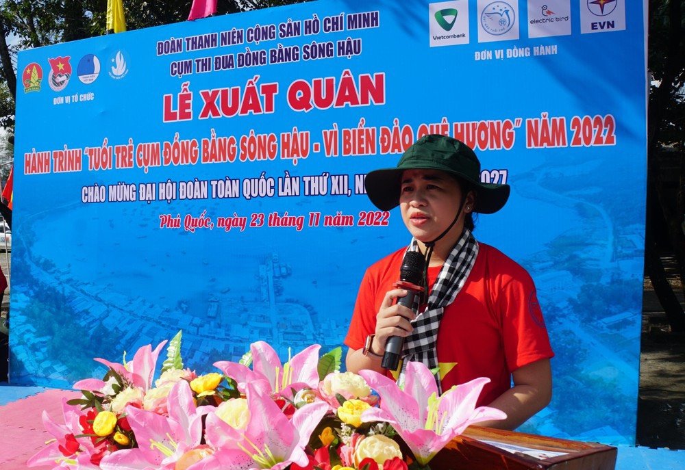 Tại buổi lễ, đồng chí Lư Thị Ngọc Anh, UVBTV Trung ương Đoàn, Bí thư Thành đoàn Cần Thơ, Cụm trưởng Cụm thi đua đồng bằng sông Hậu, cho biết, hành trình diễn ra từ ngày 23/11 đến 25/11, tại xã đảo Thổ Châu (TP. Phú Quốc, tỉnh Kiên Giang), thu hút 100 đại biểu là cán bộ Đoàn, đoàn viên, thanh niên tiêu biểu ở các tỉnh, thành. Hành trình gồm nhiều hoạt động tuyên truyền về lịch sử chủ quyền biển đảo Tây Nam của Tổ quốc; xây dựng các công trình vui chơi thể thao cho cán bộ, chiến sĩ; 1 căn nhà nhân ái cho thanh niên có hoàn cảnh khó khăn, 1 sân chơi cho thiếu nhi và lắp đặt 150 hệ thống đèn chiếu sáng năng lượng mặt trời, cùng các hoạt động bảo vệ môi trường, góp phần xây dựng đảo xanh - sạch - đẹp.