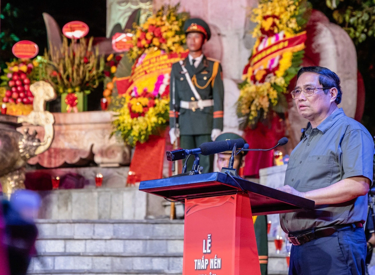 Phát biểu ý kiến tại buổi lễ, Thủ tướng Phạm Minh Chính bày tỏ, Quảng Trị - vùng đất “Toạ độ lửa”, nơi chứng kiến những đoàn quân anh dũng ra trận với tinh thần “Không có gì quý hơn độc lập, tự do”, “Xẻ dọc Trường Sơn đi cứu nước” và trong số đó hơn 74 nghìn người con ưu tú đã nằm lại, hiện đang yên nghỉ tại 157 nghĩa trang trên địa bàn Quảng Trị. Tổ quốc và nhân dân ta đời đời nhớ ơn các anh hùng liệt sĩ, thương binh, bệnh binh đã hy sinh xương máu để đất nước hôm nay được hòa bình, thống nhất và phát triển; nhân dân được ấm no, hạnh phúc.