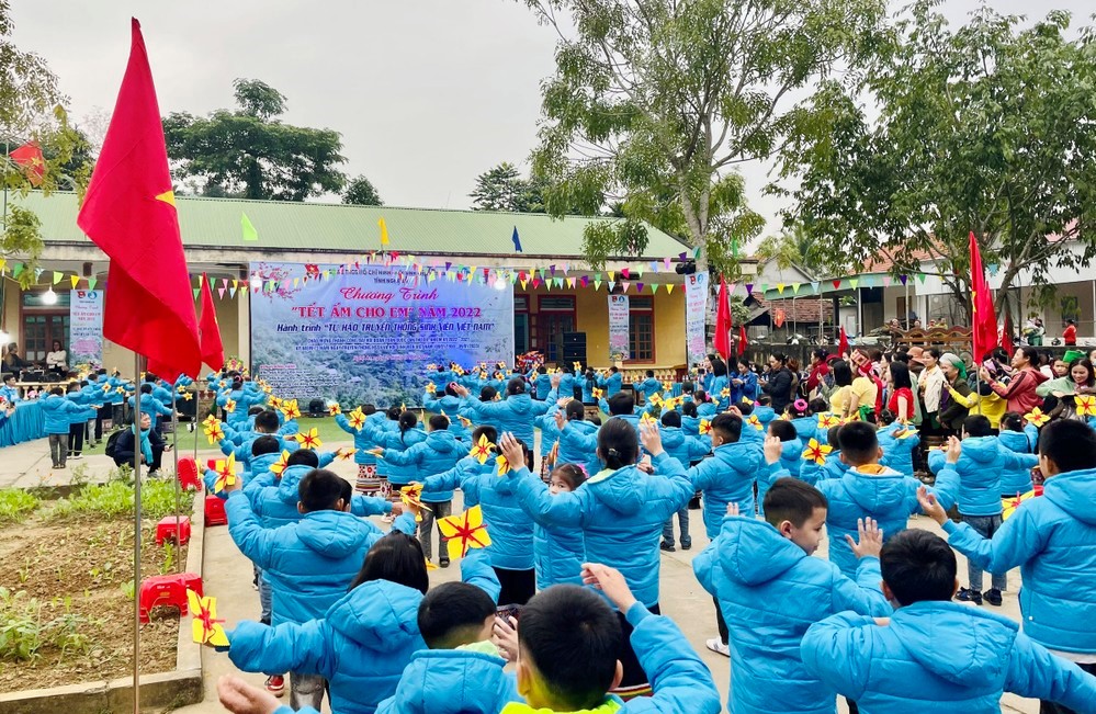 Dịp này, chương trình "Tết ấm cho em" năm 2022 cũng đã hỗ trợ Trường Tiểu học Châu Cường (Quỳ Hợp) xây dựng phòng thư viện, 1 bộ máy tính, 300 khăn quàng đỏ với tổng trị giá 20 triệu đồng. Ảnh: Phương Thảo