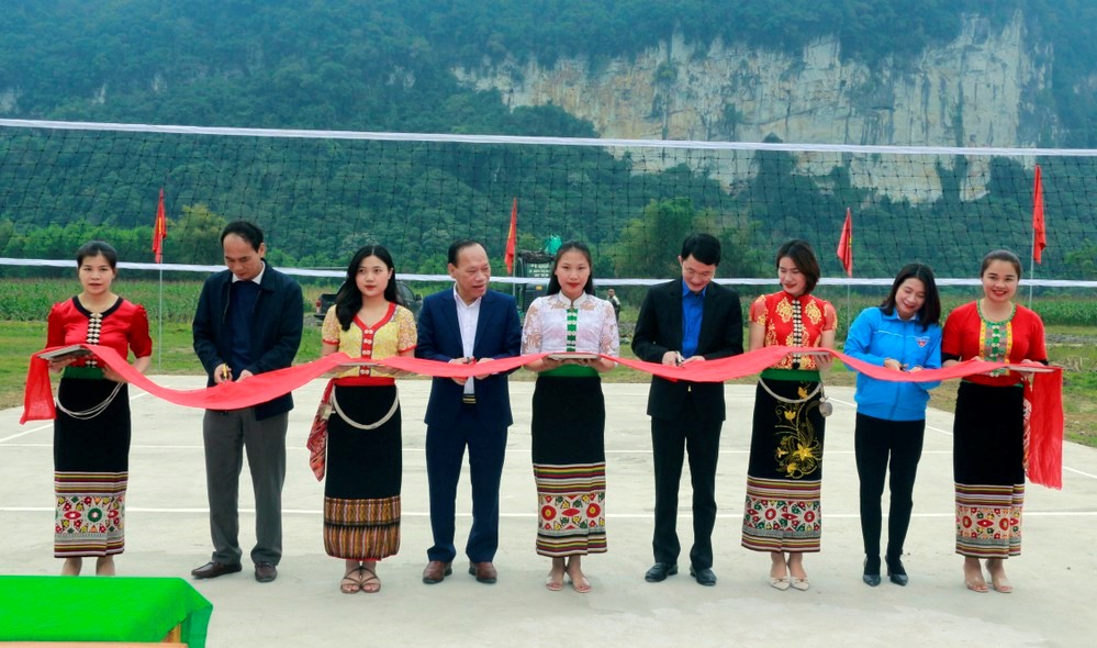 Đồng thời, trao tặng một sân bóng chuyền cho xã Châu Cường trị giá 20 triệu đồng nhằm tạo sân chơi cho người dân và thanh thiếu nhi địa phương. Được biết, tổng giá trị các phần quà và công trình hỗ trợ tại Chương trình “Tết ấm cho em” năm 2022 - Hành trình “Tự hào truyền thống sinh viên Việt Nam" có tổng giá trị hơn 81,5 triệu đồng. Ảnh: Quang Thành