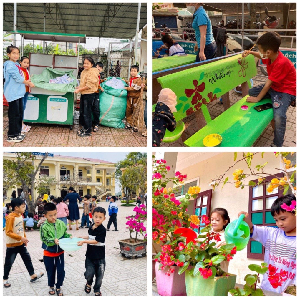 Bên cạnh đó, nhiều mô hình nổi bật đã được thực hiện bởi các em đội viên, học sinh như: mô hình “Đổi rác lấy quà”; mô hình “Ngôi nhà Kế hoạch nhỏ”; hội thi “Vẽ tranh bảo vệ môi trường”; sinh hoạt ngoại khóa “Nói chuyện về bảo vệ môi trường”; chương trình “Vì mái trường xanh”, Ngày hội tái chế, mô hình “Ngôi nhà xanh thu gom phế liệu… được đông đảo các em đội viên, học sinh tích cực hưởng ứng và đăng ký tham gia.