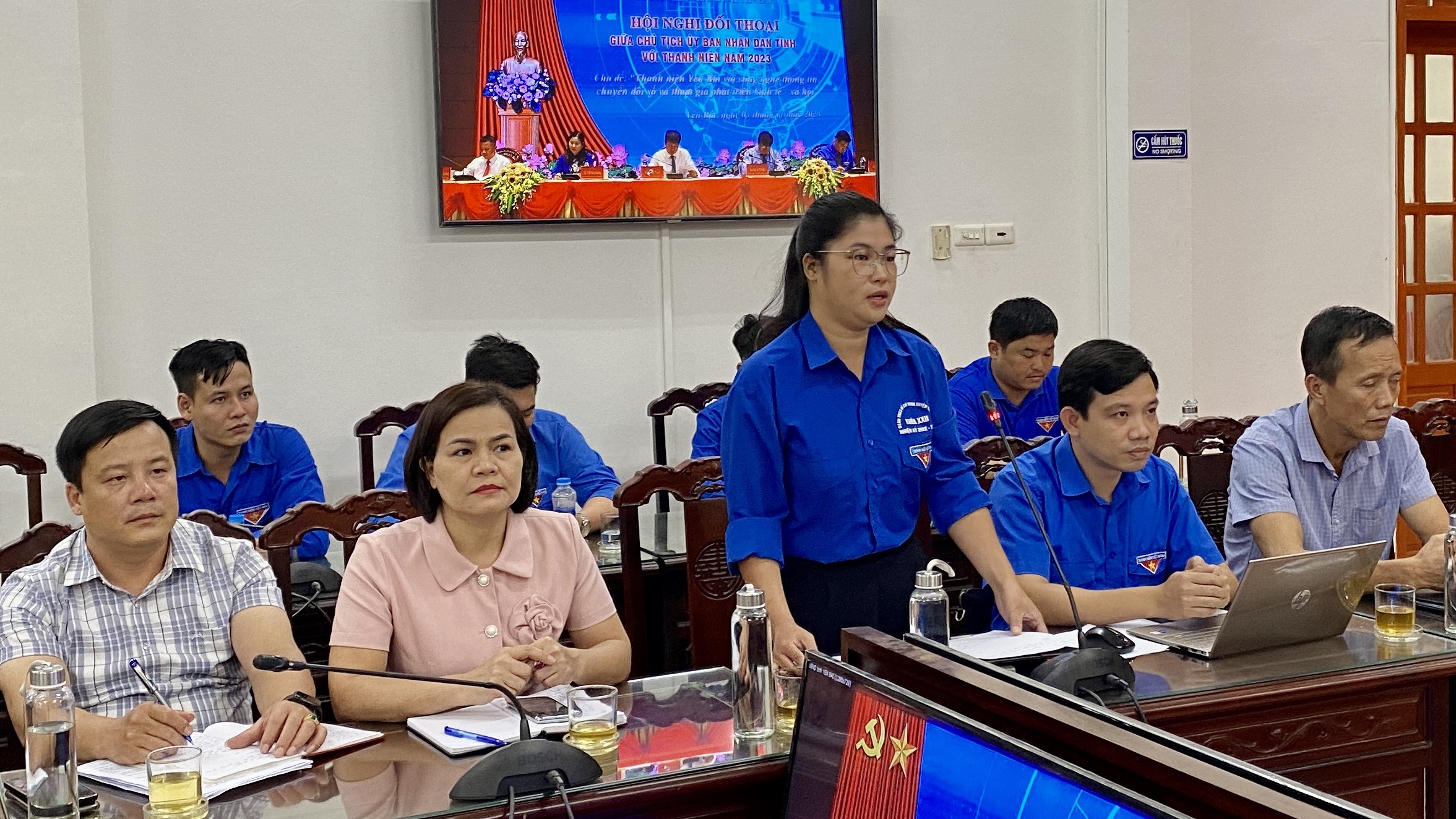 Đồng chí Chủ tịch UBND tỉnh trực tiếp trả lời câu hỏi của đoàn viên Lương Thu Giang - phường Minh Tân, thành phố Yên Bái