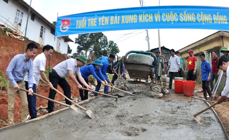 Công trình đường bê tông hóa có chiều dài 700m, rộng 3m với tổng giá trị trên 200 triệu đồng bằng nguồn vốn xã hội hóa do Tỉnh đoàn – Hội đồng đội tỉnh Yên Bái vận động, lực lượng đoàn viên thanh niên và nhân dân địa phương đóng góp cát sỏi và ngày công xây dựng.