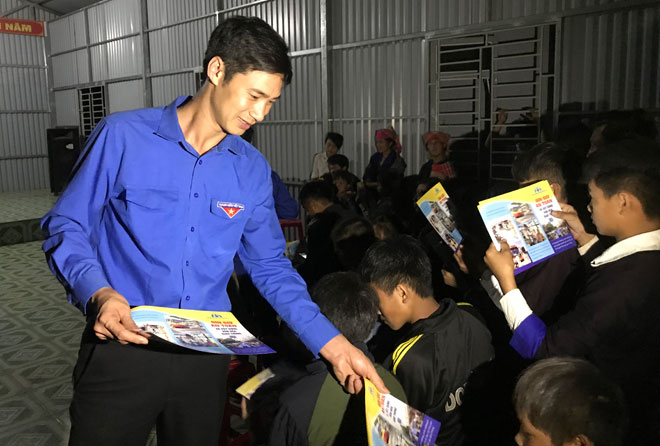 Phát tờ rơi tuyên truyền tại buổi giao lưu truyền thống