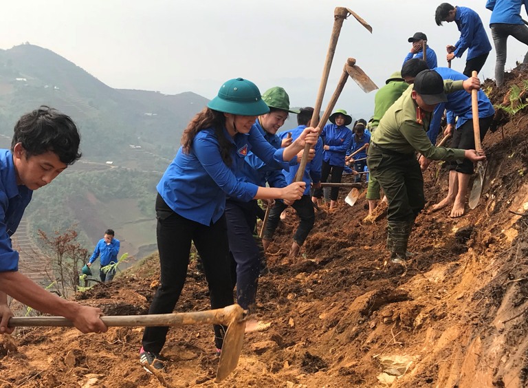 Đoàn viên thanh niên khai hoang ruộng bậc thang