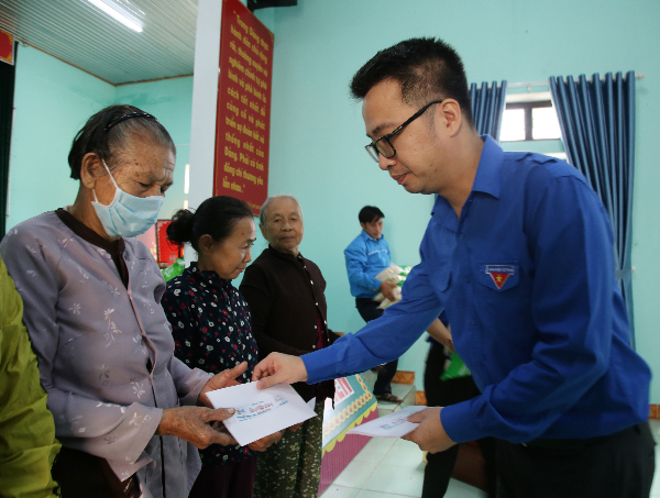 Web.ĐTN: Sáng 2/11, đoàn công tác Thành đoàn TP.HCM phối hợp với Tỉnh đoàn Quảng Ngãi tổ chức chương trình cứu trợ khắc phục bão số 9 tại xã Bình Tân Phú (huyện Bình Sơn, tỉnh Quảng Ngãi), hỗ trợ 100 hộ dân mỗi hộ 1 triệu đồng; tặng quà và khám bệnh, cấp thuốc miễn phí cho 300 người dân.