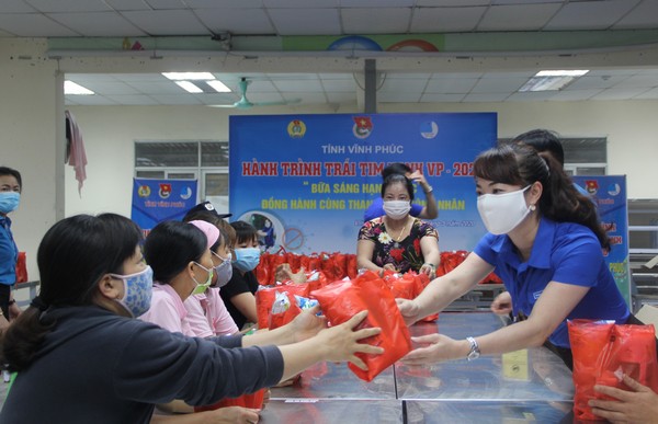 Web.ĐTN: Sáng ngày 11/5, Tỉnh đoàn, Hội LHTN Việt Nam tỉnh phối hợp với Liên đoàn Lao động tỉnh Vĩnh Phúc tổ chức chương trình “Bữa sáng hạnh phúc” cho đoàn viên thanh niên công nhân, người lao động tại thuộc khu công nghiệp trên địa bàn thành phố Vĩnh Yên và thành phố Phúc Yên.