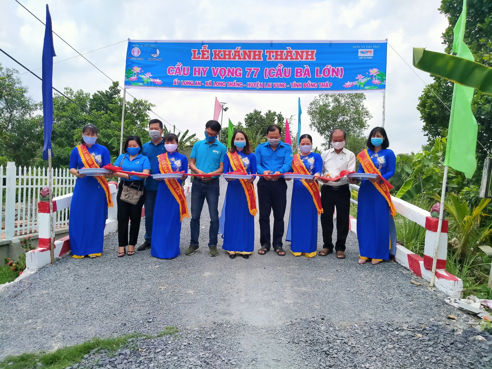 Web.ĐTN: Ngày 26/4, Ban Thường vụ Tỉnh đoàn phối hợp Hội LHTN Việt Nam tỉnh Đồng Tháp tổ chức khánh thành và khởi công 9 cầu Hy Vọng – Nâng bước em đến trường trên địa bàn tỉnh.