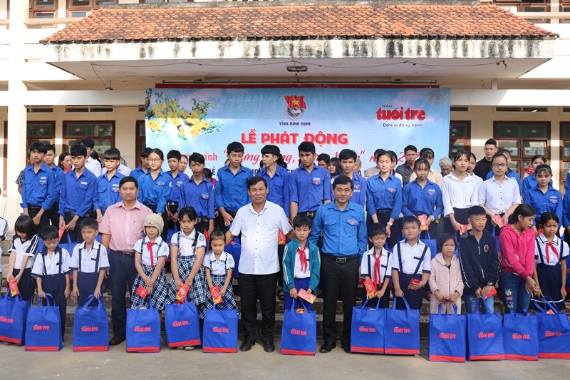 Web.ĐTN: Sáng ngày 10/01/2020, tại xã Ân Nghĩa, huyện Hoài Ân, Ban Thường vụ Tỉnh đoàn Bình Định tổ chức Lễ phát động Mừng Đảng - mừng Xuân năm 2020, tặng quà tết sẻ chia với học trò nghèo vùng khó khăn.