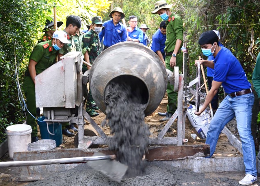 Web.ĐTN: Sáng Chủ nhật, 29/9, Đoàn khối Các cơ quan tỉnh Quảng Ngãi phối hợp với huyện đoàn Đức Phổ tổ chức ra quân tình nguyện đóng góp ngày công làm đường bê tông nông thôn tại xã Phổ Quang (Đức Phổ).