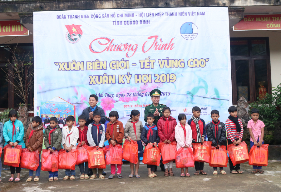 Web.ĐTN: Ngày 22/01, tại Đồn Biên phòng Làng Ho, xã Lâm Thủy, huyện Lệ Thủy, Tỉnh Đoàn Quảng Bình tổ chức Chương trình “Xuân biên giới - Tết vùng cao” nhân dịp đón Tết nguyên đán Kỷ Hợi năm 2019.