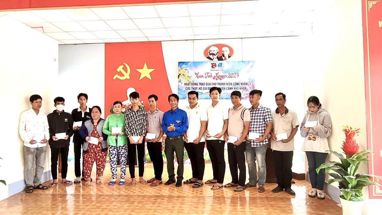 ĐTN: Nằm trong chuỗi các hoạt động Xuân Tình nguyện năm 2024, sáng 28/01, Tỉnh đoàn, Hội LHTN Việt Nam tỉnh Bạc Liêu tổ chức Chương trình Xuân Tình nguyện trao quà cho thanh niên công nhân, cựu TNXP và hộ gia đình có hoàn cảnh khó khăn trên địa bàn xã Phong Thạnh, thị xã Giá Rai.