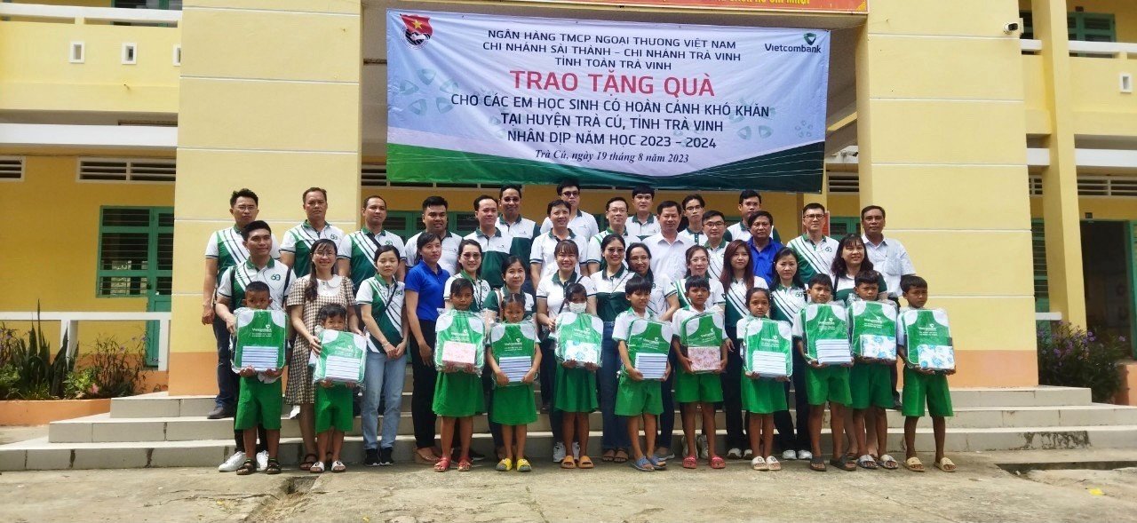 ĐTN: Ngày 19/8, Tỉnh đoàn phối hợp với Ngân hàng TMCP Ngoại thương Việt Nam trao tặng 200 phần quà gồm 01 ba lo và 10 quyển tập trị giá 25 triệu đồng cho các em học sinh có hoàn cảnh khó khăn trên địa bàn xã Phước Hưng và xã Tập Sơn huyện Trà Cú nhân dịp năm học mới 2023 – 2024.