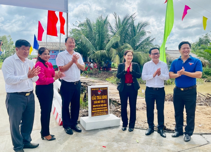 ĐTN: Sáng ngày 29/8, Ban Thường vụ Tỉnh đoàn Trà Vinh và Ban Thường vụ Tỉnh đoàn Thái Bình phối hợp với chính quyền địa phương tổ chức Lễ Khánh thành Cầu Thái Bình, tại ấp Giồng Giá, xã Hòa Minh, huyện Châu Thành, tỉnh Trà Vinh.