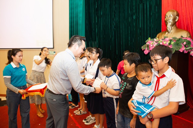 Trong khuôn khổ chương trình "Vòng tay yêu thương", Hội Doanh nhân trẻ Việt Nam đã trao tặng 90 suất học bổng (1 triệu đồng/suất) và 330 phần quà cho trẻ em hoàn cảnh khó khăn, có thành tích học tập xuất sắc.