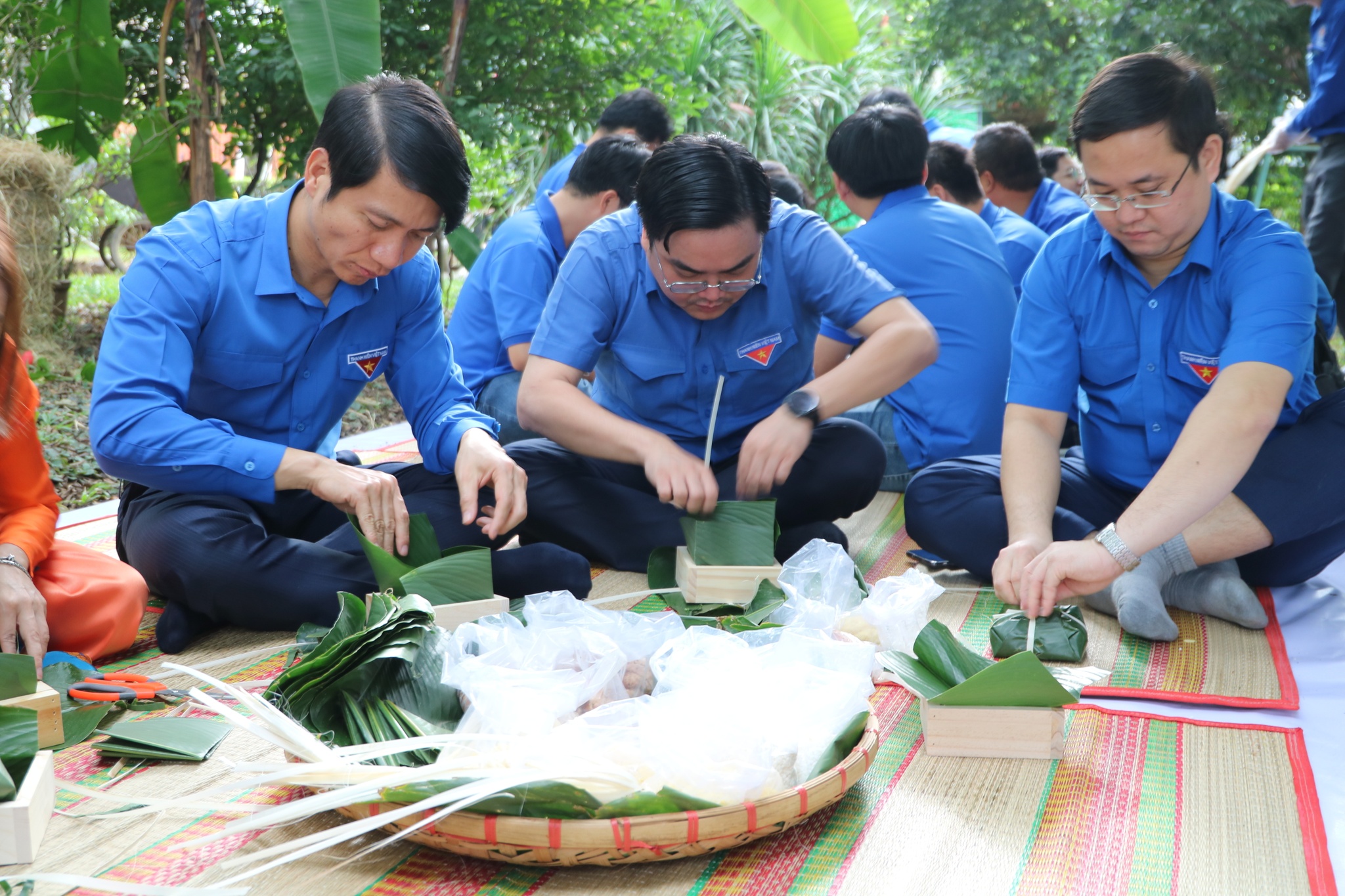 Bí thư Thường trực T.Ư Đoàn, Chủ tịch T.Ư Hội Liên hiệp Thanh niên Việt Nam Nguyễn Ngọc Lương đã tham gia gói những chiếc bánh chưng để gửi đến những bạn trẻ khó khăn và người nghèo tại Ngày hội “Tết quê hương” năm 2023.