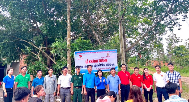 ĐTN: Chiều 28/9, Trung ương Đoàn, Tỉnh đoàn Tây Ninh phối hợp với Tổng Công ty Cổ phần Bia - Rượu - Nước giải khát Sài Gòn (SABECO) tổ chức khánh thành công trình thanh niên “Thắp sáng đường quê” năm 2022 tại Nhà văn hóa Làng Thanh niên lập nghiệp biên giới Ninh Điền, ấp Bến Cừ, xã Ninh Điền, huyện Châu Thành.